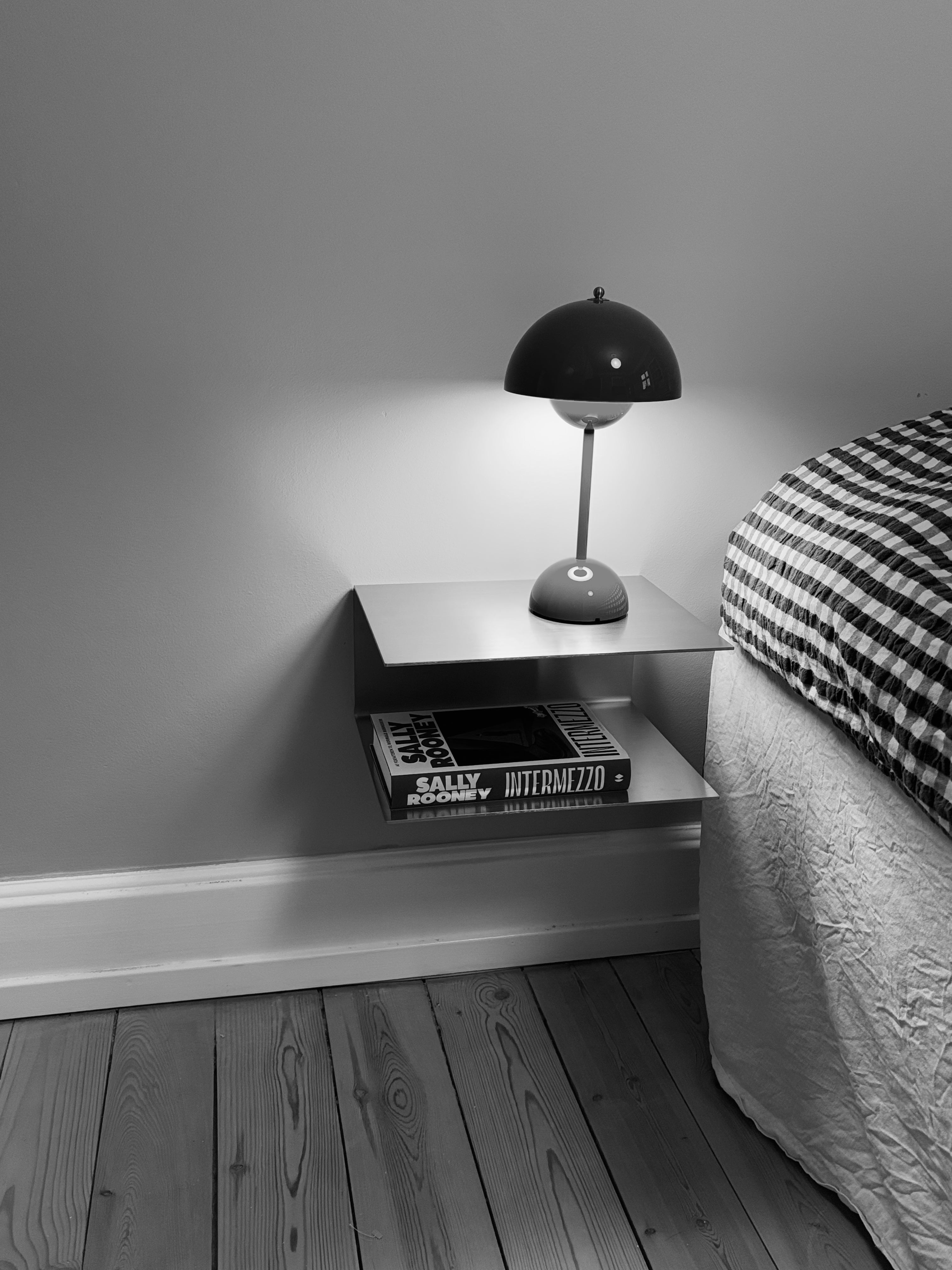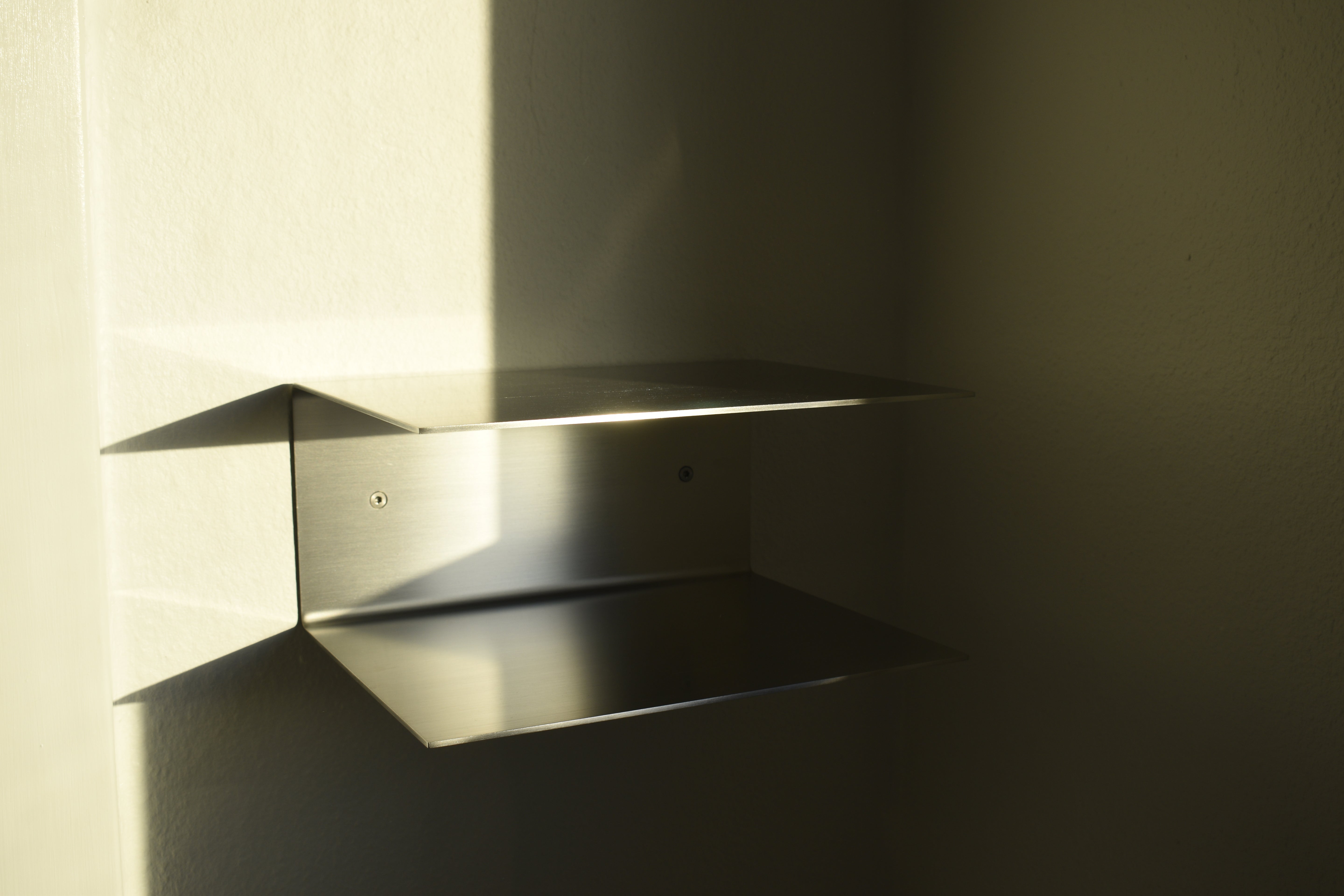 LUND er et tidløst og funktionelt natbord, håndlavet i Danmark fra start til slut. Bordet kan bruges som sengebord, natbord, sidebord, køkkenhylde eller til andre formål. Fremstillet med præcision i 3 mm børstet rustfrit stål, og med to undersænkede huller til nem ophængning. Rawlplugs og 100% rustfri stålskruer medfølger.
