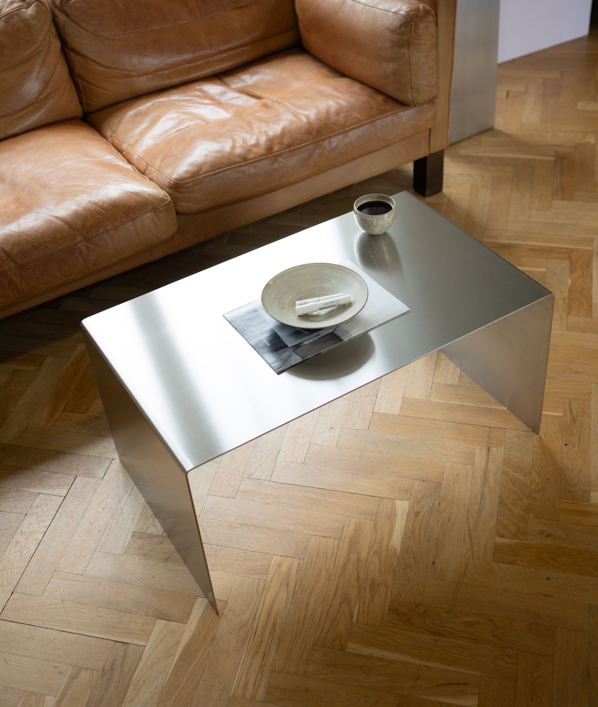 COPENHAGEN er et tidsløst stål sofabord i 4mm børstet rustfrit stål. Sofabordet er håndlavet med stor omhu i Danmark for at sikre høj kvalitet, stabilitet og funktionalitet. Den simple form lader materialet være det fremtrædende element.
